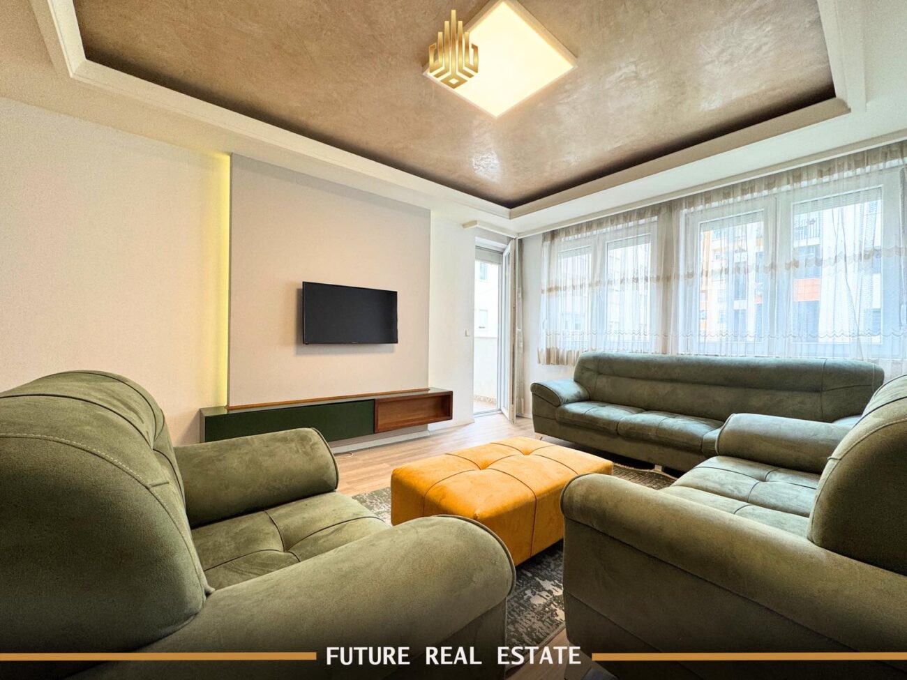 Banesa është e dekoruar në mure dhe tavane me gips dhe ndriçim LED, duke ofruar një ambient të këndshëm dhe modern.