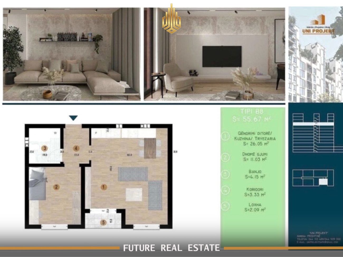 Ofrohet për #shitje banesa me sipërfaqe 56 m2, në Prishtinë, në lagjen Prishtina e Re, nga ndërtuesi UNI Project.