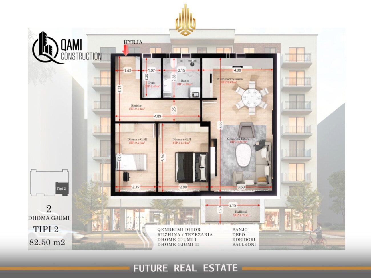 Ofrohet për #shitje banesa me sipërfaqe 82.50 m2! në Fushë Kosovë, në kompleksin Rina Residence, Objekti I ndërtim nga Qami Construction.