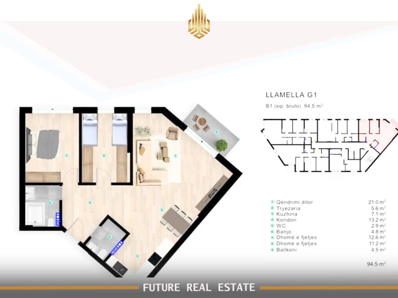 Siperfaqja : 94.5 m2