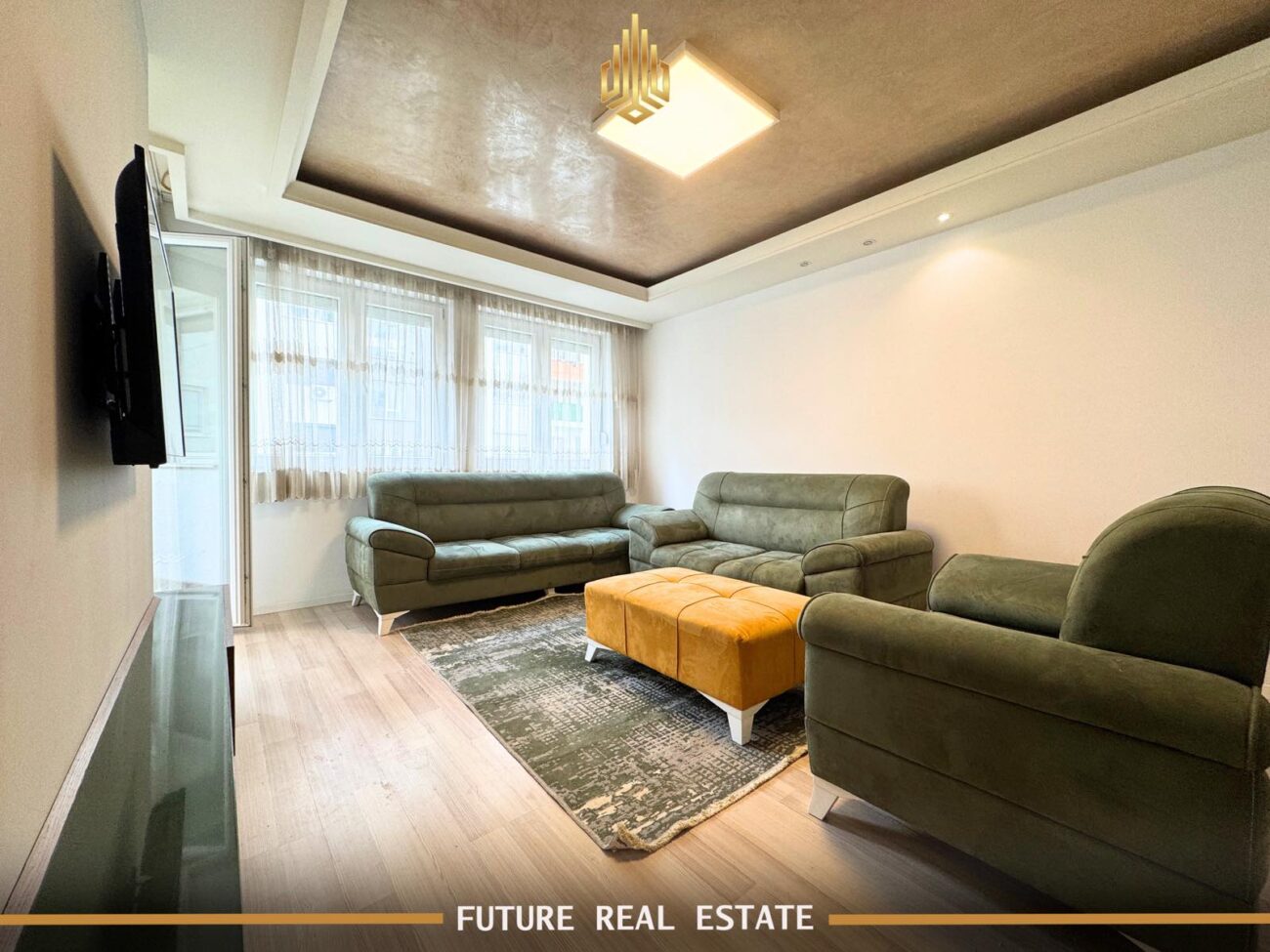 Banesa është e dekoruar në mure dhe tavane me gips dhe ndriçim LED, duke ofruar një ambient të këndshëm dhe modern.