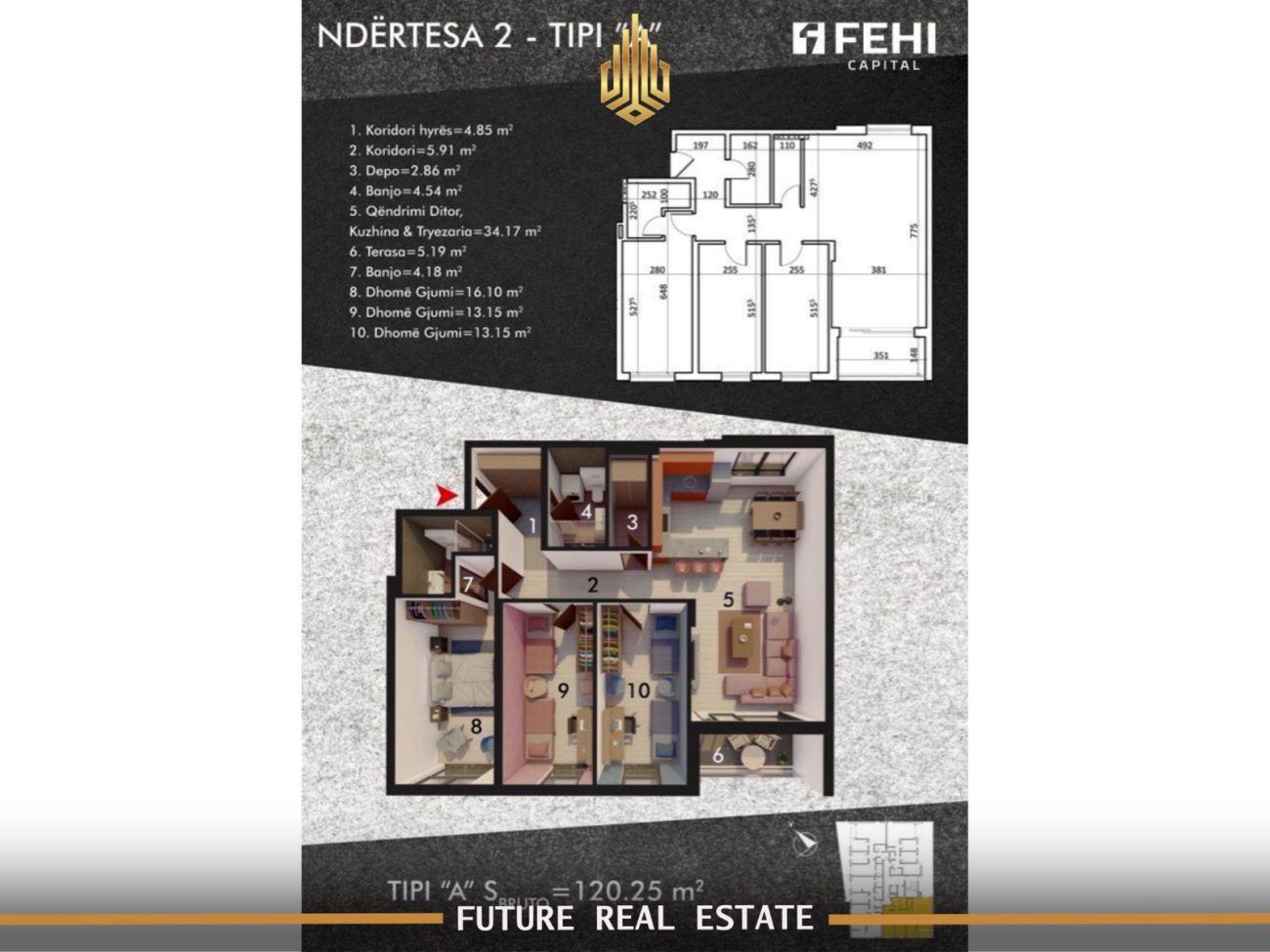 Ofrohet për #shitje banesa me sipërfaqe 120 m2, në Prishtinë, në lagjen Kalabri (Emshir), nga ndërtuesi Fehi Capital.