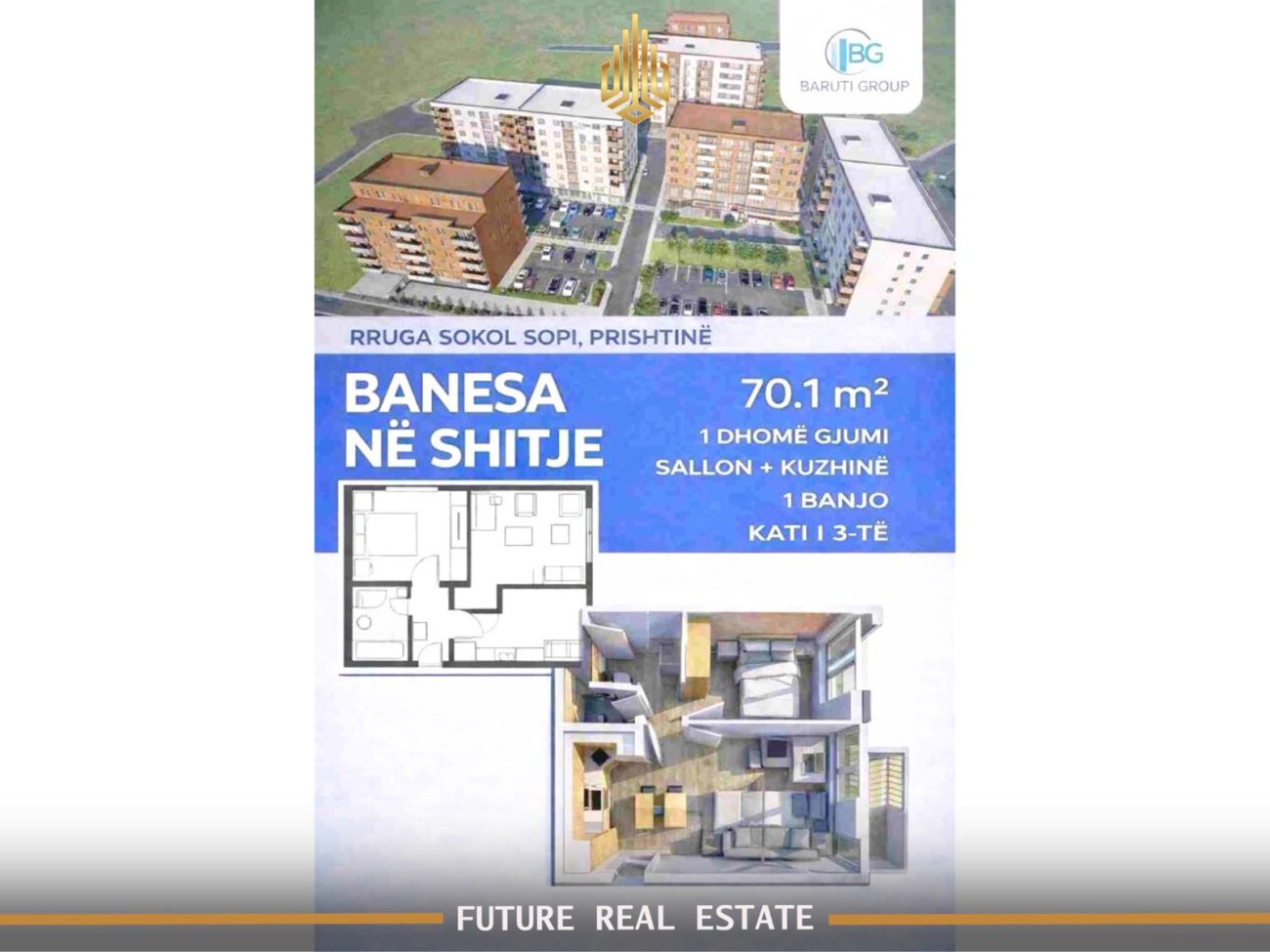 Ofrohet për #shitje banesa me sipërfaqe 70.1 m2! në Prishtinë, në lagjen mati 1 në rrugën Sokol Sopi, e ndërtuar nga Baruti Group.